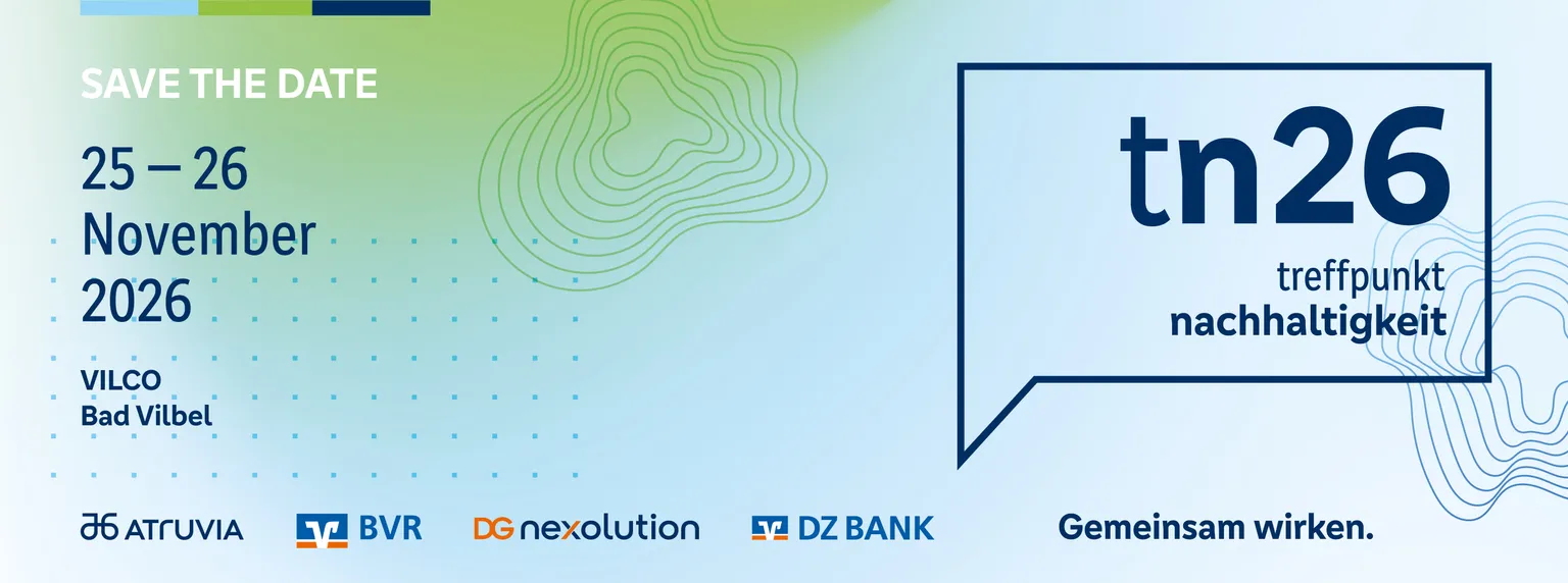 Zum dritten Mal laden Atruvia, BVR, DG Nexolution und DZ BANK gemeinsam zum „Treffpunkt Nachhaltigkeit“ ein – denn die größte Wirkung entsteht im Schulterschluss. Und weil Wirkung noch größer wird, wenn man Wissen teilt, freuen wir uns auch in diesem Jahr über Best Practices aus den Banken.